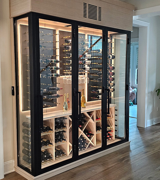 Our wine walls are a perfect solution for both condos and single-family homes, offering luxury wine storage without the need for a full cellar. Installation is quick and clean, typically completed in just a day or two.